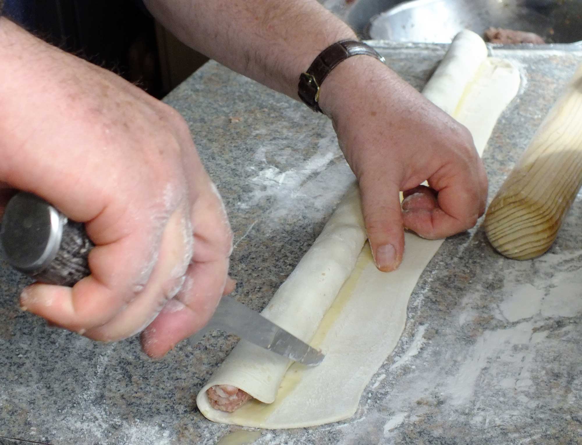 cooked sausage rolls cooling down and ready for packing for tomorrows point to point picnic at Penshurst