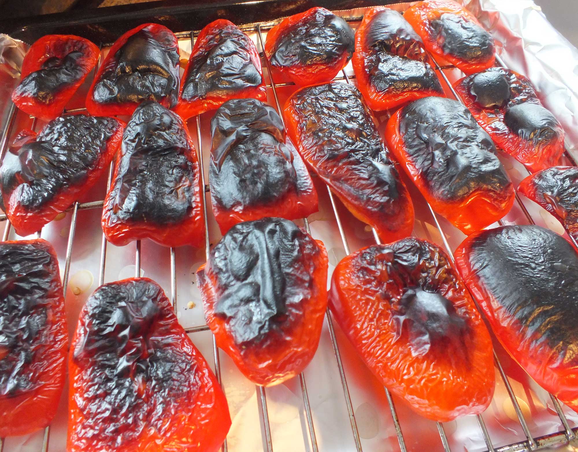 The peppers after 10 minutes under a very hot grill
