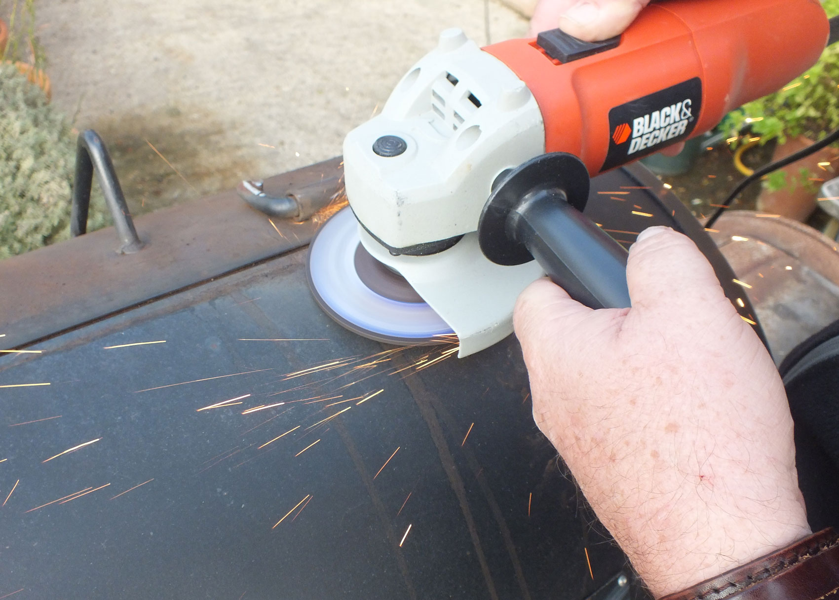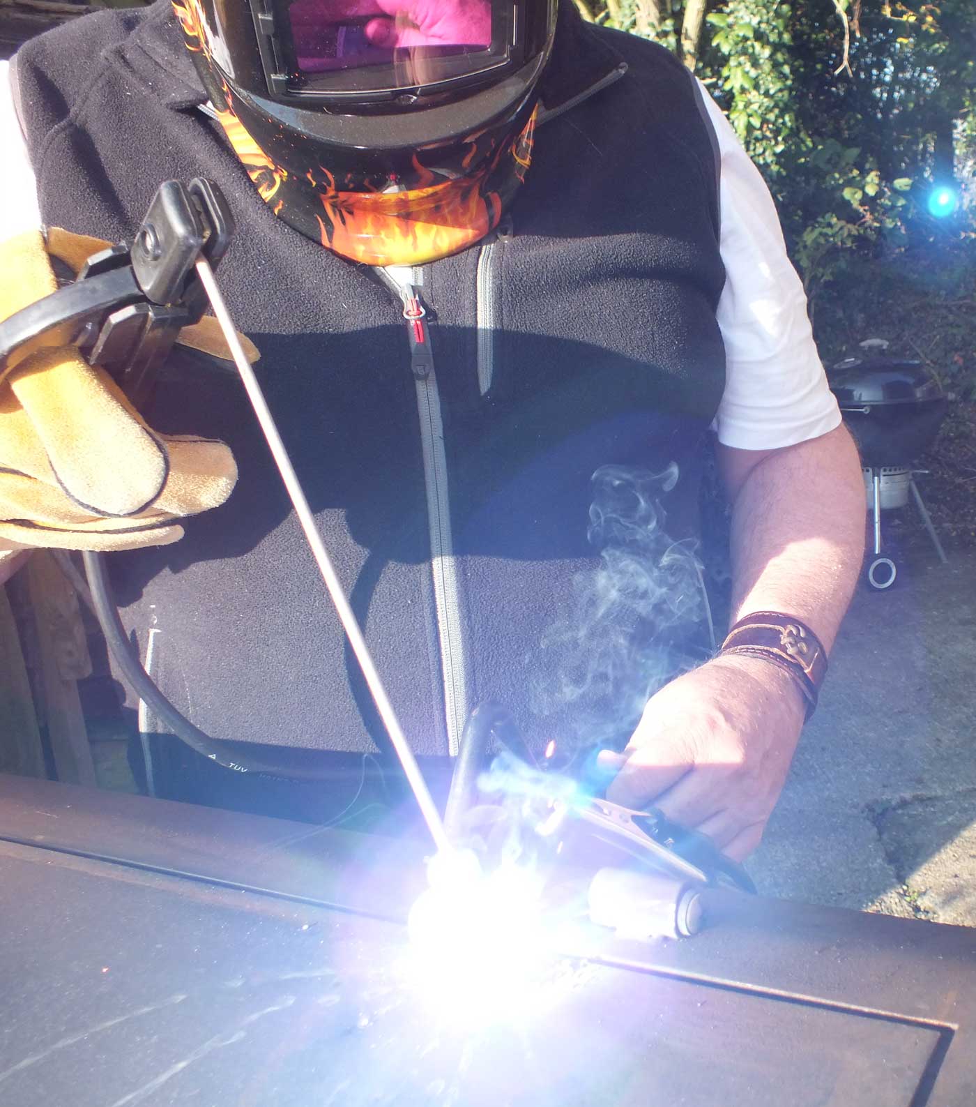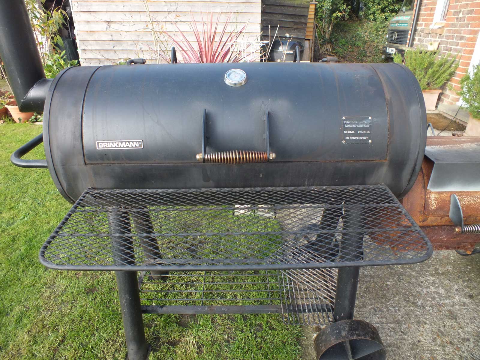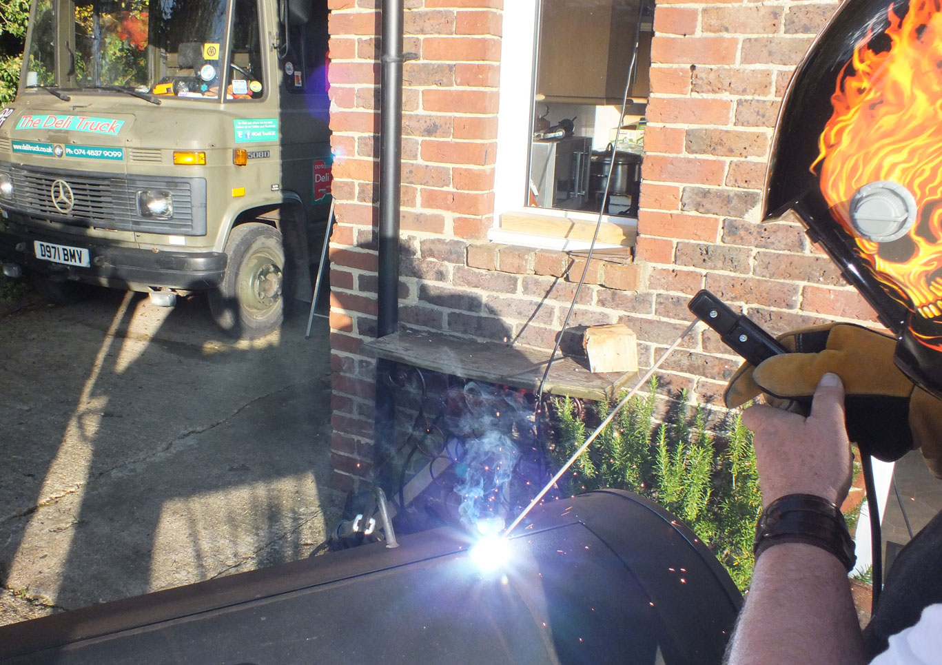 Well our legendary smoker has had a really busy year. We estimate we have put over 300 shoulders of pork through our wonderful machine this year. “Sam the Smoker” has had a marathon run over the summer but we couldn’t cook the food we love to make without him. Sam enables us to bath our shoulders of pork in a rich variety of smoke from different woods, but mainly oak from Kent. So of course “Sam the Smoker” needed some serious end of year maintenance especially after a very hot smoke when one of the original lid hinge welds split. So out with the angle grinder and welder. Better to fix than have to chuck out and buy another.