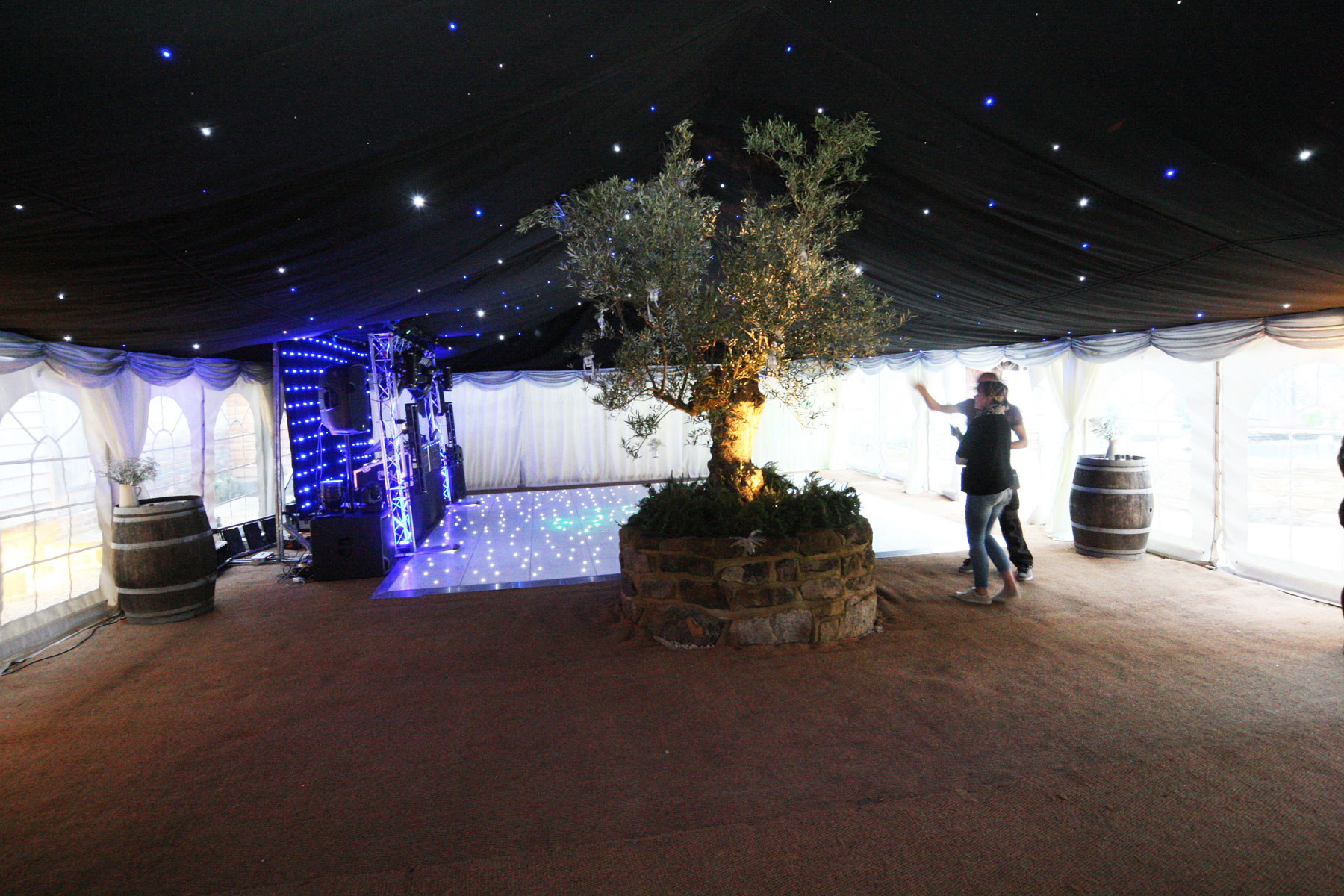 Our host wanted an unforgettable shared birthday party – a 50th for his wife (she looked 35) and a 21st for his daughter. The venue was fantastic – a series of barns and outside dancing areas with an enclosed courtyard area for covered dancing and partying. Our client also wanted a fun festival feel to the event with a number of food trucks sited beside the main barn.