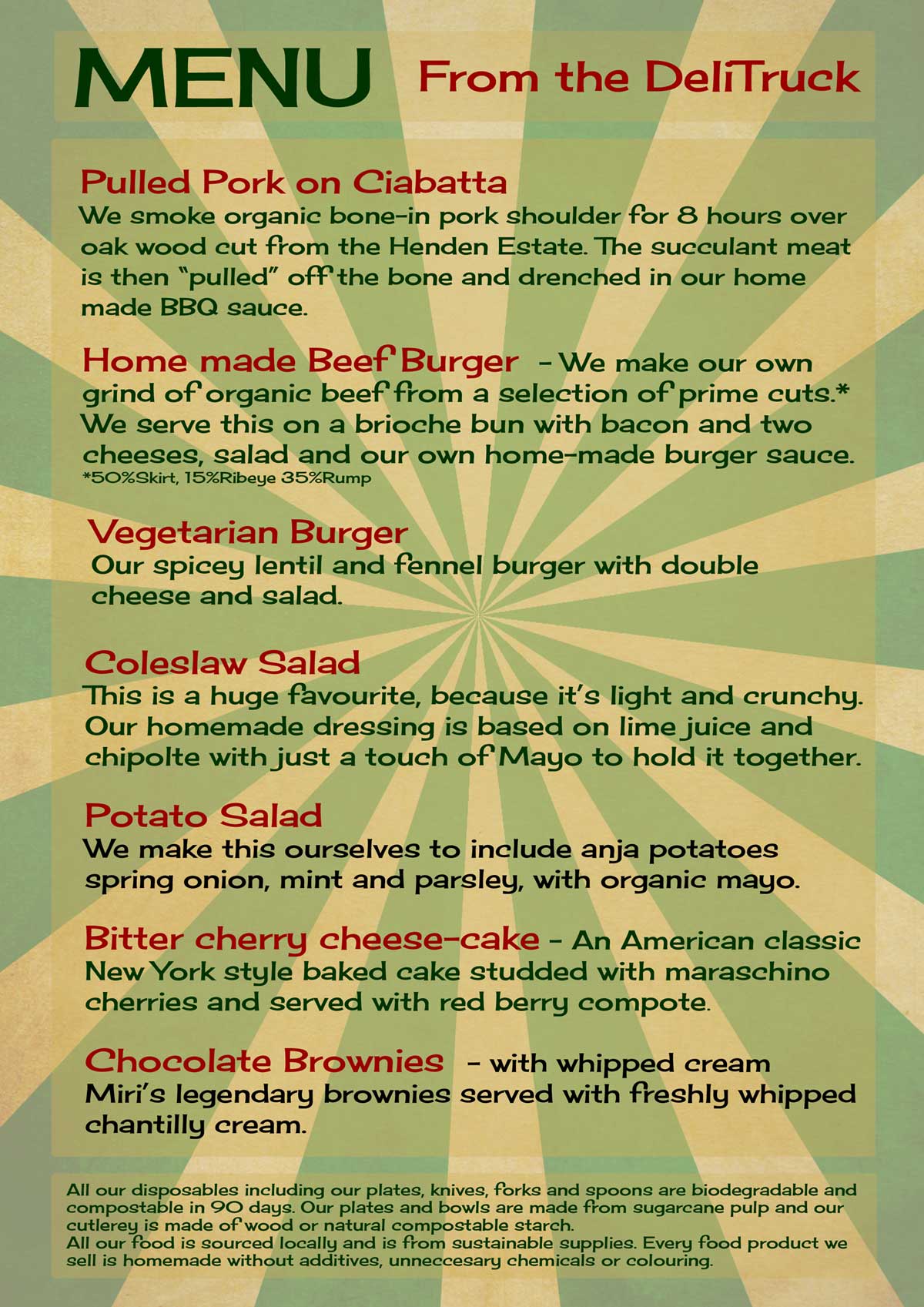 The menu we designed was a mixture of some of our old and much loved favourites and some brand new dishes. Our hosts had a desire for an American baked cheesecake with morello cherry topping. We test baked a number of these cakes over a two week period until we found the perfect one. This cheesecake went down a storm. The rest of the menu including our 8 hour smoked pulled pork, our home ground beef burger a very special vegetarian burger that we invented – it was so good we had a number of meat lovers wanting one. Our famous salads and of course our desserts.